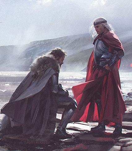 Torrhen Stark, the last King in the North, bowing to Aegon the Conqueror.