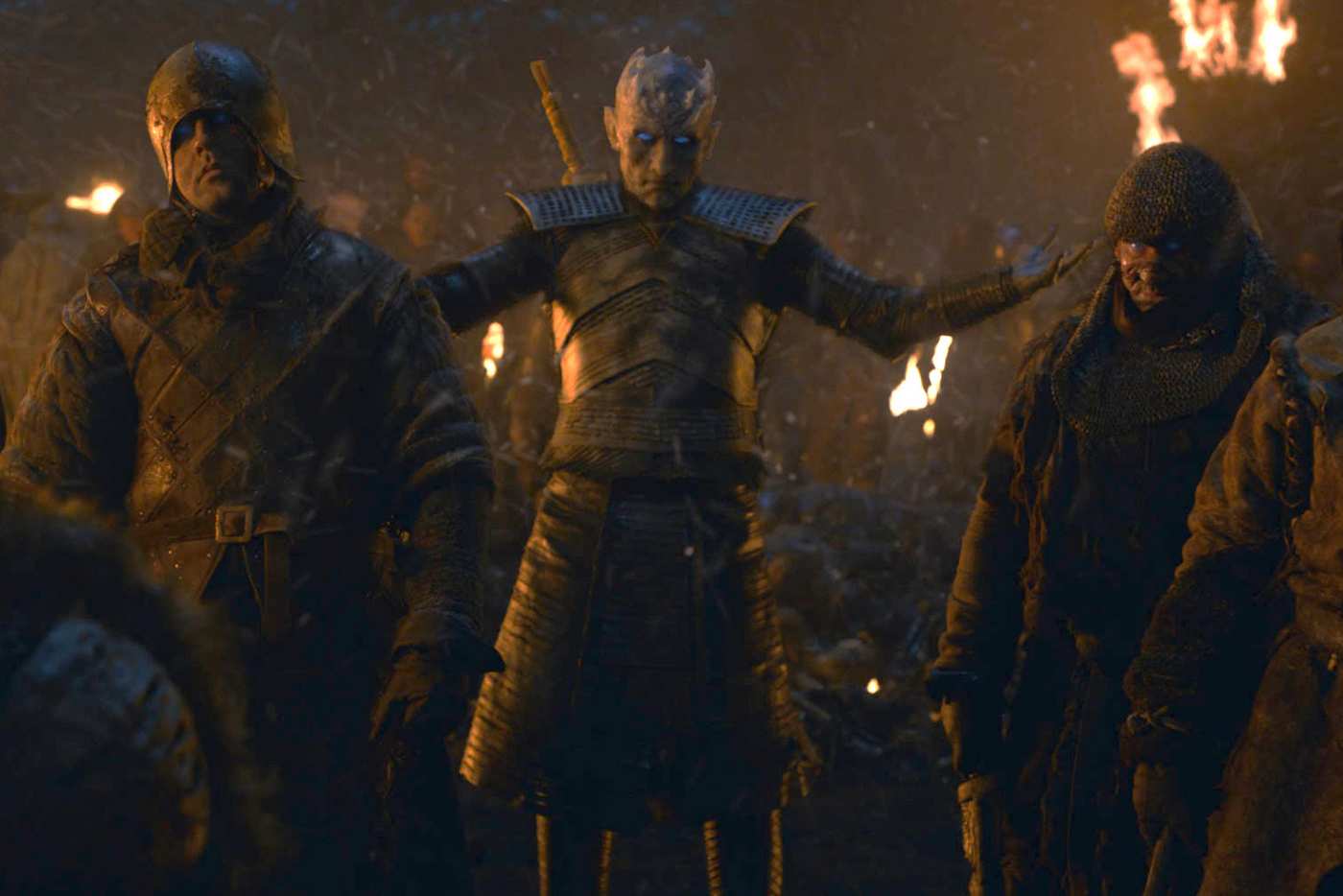 - Great visual when the Night King brings all his soldiers, and the Winterfell soldiers, back to life. But it does bring the plot armor issue into light again. We see simultaneous shots of Jon completely surrounded, and then the next shot he is back in the open. This happens with Jaime, Brienne, and Tormund too. Again, there is nothing wrong with main characters surviving (the idea of main characters always dying in this show is VASTLY overstated) but it is annoying to see them put in impossible situations they have no chance of overcoming, and then getting through them unscathed. Main characters living is not new to this series, but these unrealistic situations are way more prevalent in later seasons.